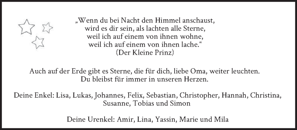 Hier finden Sie alle Traueranzeigen aus der Zeitung, die bisher für Oma erschienen sind. Weitere Traueranzeigen, die in der Zeitung erscheinen, werden hier ebenfalls aufgelistet