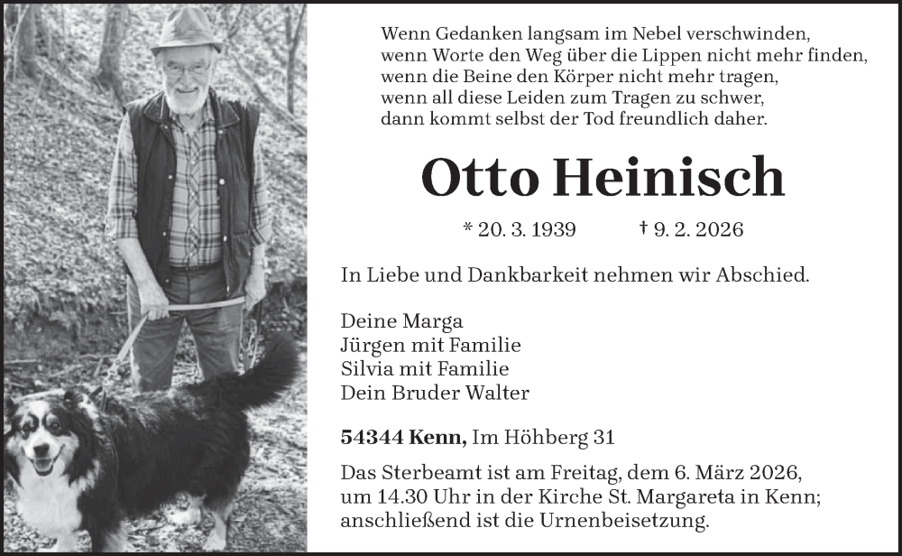 Hier finden Sie alle Traueranzeigen aus der Zeitung, die bisher für Otto Heinisch erschienen sind. Weitere Traueranzeigen, die in der Zeitung erscheinen, werden hier ebenfalls aufgelistet