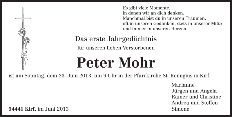 Hier finden Sie alle Traueranzeigen aus der Zeitung, die bisher für Peter Mohr erschienen sind. Weitere Traueranzeigen, die in der Zeitung erscheinen, werden hier ebenfalls aufgelistet