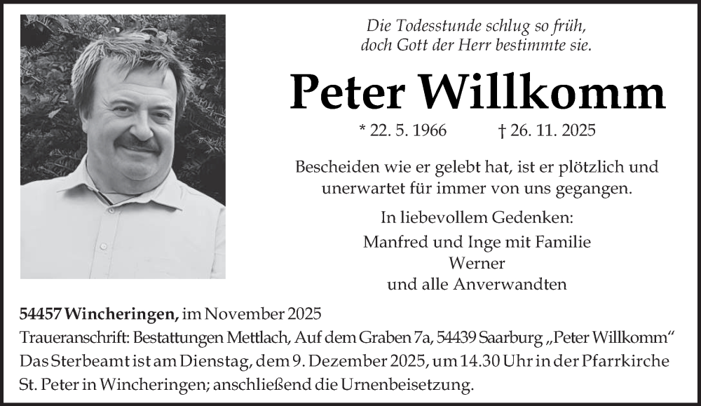 Hier finden Sie alle Traueranzeigen aus der Zeitung, die bisher für Peter Willkomm erschienen sind. Weitere Traueranzeigen, die in der Zeitung erscheinen, werden hier ebenfalls aufgelistet