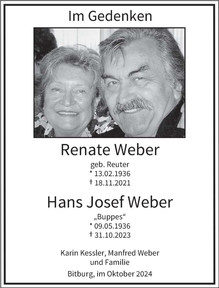 Hier finden Sie alle Traueranzeigen aus der Zeitung, die bisher für Renate Weber erschienen sind. Weitere Traueranzeigen, die in der Zeitung erscheinen, werden hier ebenfalls aufgelistet