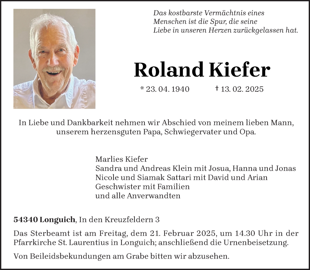 Hier finden Sie alle Traueranzeigen aus der Zeitung, die bisher für Roland Kiefer erschienen sind. Weitere Traueranzeigen, die in der Zeitung erscheinen, werden hier ebenfalls aufgelistet