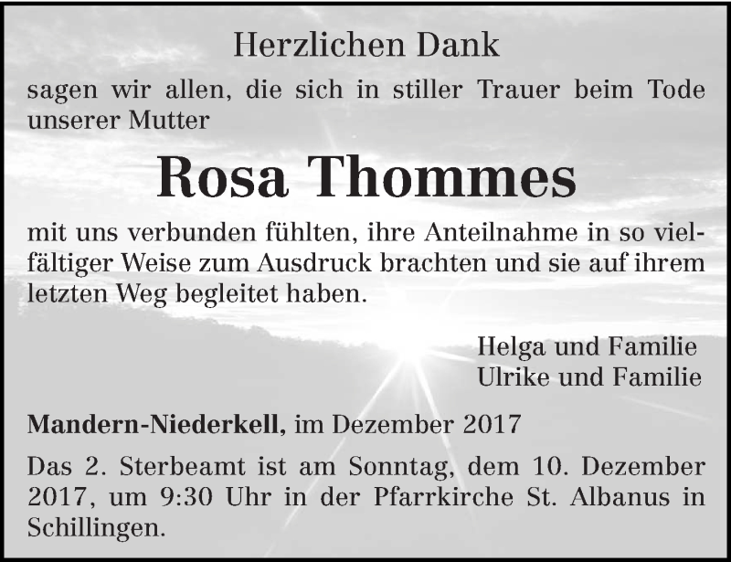 Hier finden Sie alle Traueranzeigen aus der Zeitung, die bisher für Rosa Thommes erschienen sind. Weitere Traueranzeigen, die in der Zeitung erscheinen, werden hier ebenfalls aufgelistet