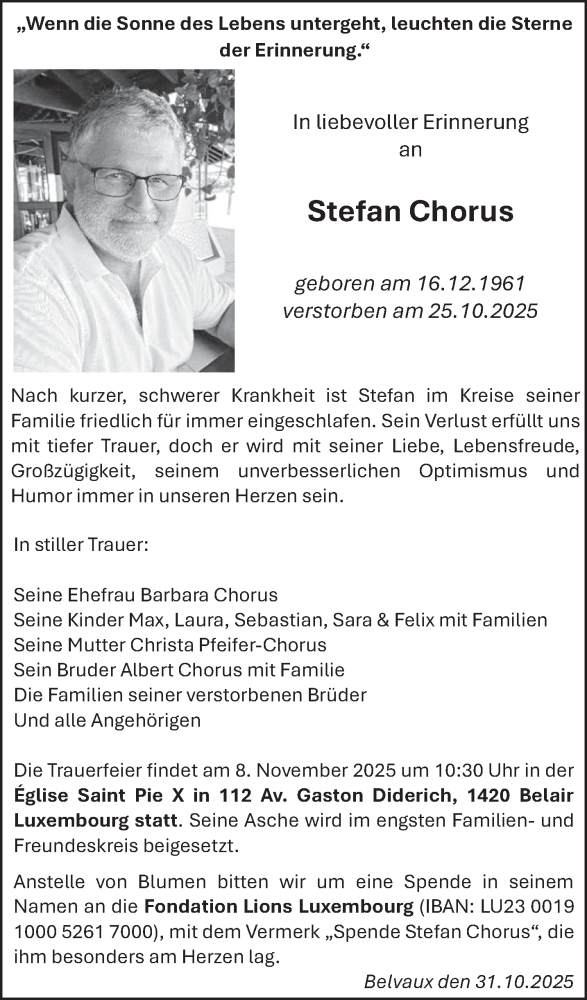 Hier finden Sie alle Traueranzeigen aus der Zeitung, die bisher für Stefan Chorus erschienen sind. Weitere Traueranzeigen, die in der Zeitung erscheinen, werden hier ebenfalls aufgelistet