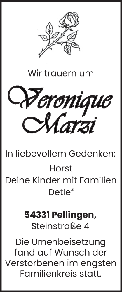Hier finden Sie alle Traueranzeigen aus der Zeitung, die bisher für Veronique Marzi erschienen sind. Weitere Traueranzeigen, die in der Zeitung erscheinen, werden hier ebenfalls aufgelistet