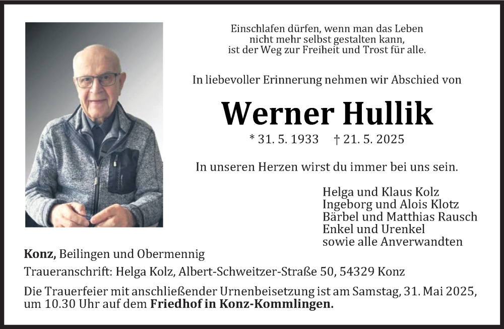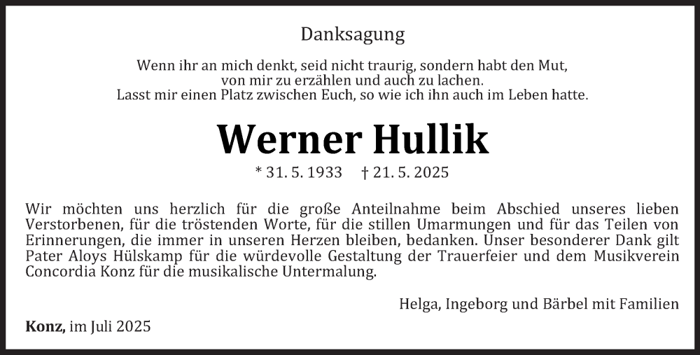 Hier finden Sie alle Traueranzeigen aus der Zeitung, die bisher für Werner Hullik erschienen sind. Weitere Traueranzeigen, die in der Zeitung erscheinen, werden hier ebenfalls aufgelistet
