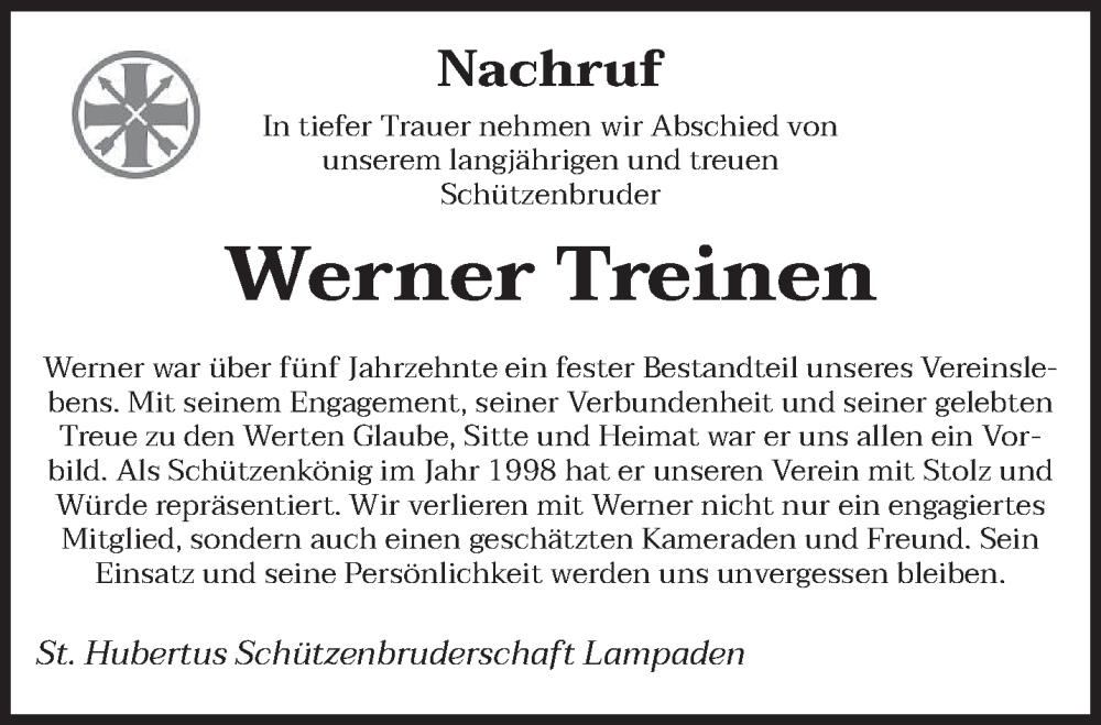 Hier finden Sie alle Traueranzeigen aus der Zeitung, die bisher für Werner Treinen erschienen sind. Weitere Traueranzeigen, die in der Zeitung erscheinen, werden hier ebenfalls aufgelistet