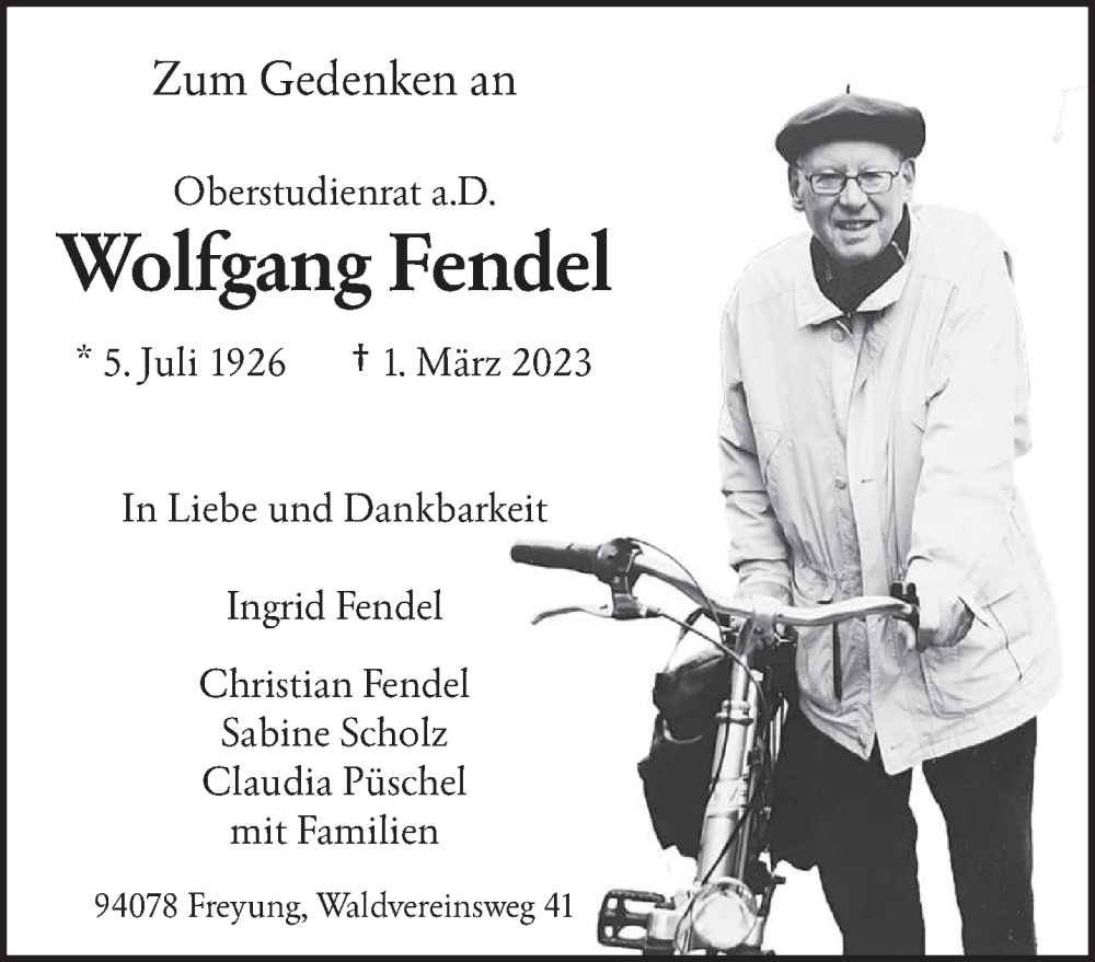 Hier finden Sie alle Traueranzeigen aus der Zeitung, die bisher für Wolfgang Fendel erschienen sind. Weitere Traueranzeigen, die in der Zeitung erscheinen, werden hier ebenfalls aufgelistet